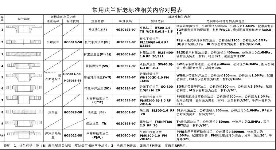 新標(biāo)法蘭和老標(biāo)法蘭的區(qū)別主要體現(xiàn)在三個(gè)方面:理論重量不同;對(duì)焊的密封臺(tái)不同(主要是帶頸對(duì)焊法蘭,新標(biāo)一個(gè)臺(tái),老標(biāo)兩個(gè)臺(tái));外徑不同(新標(biāo)比老標(biāo)大);